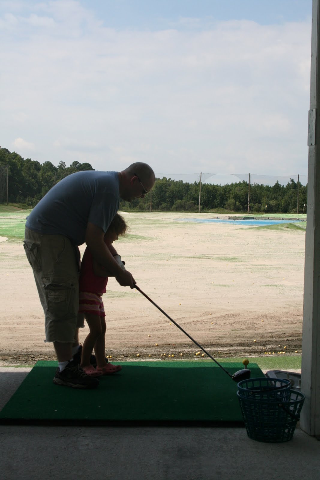 We finished up the morning with a bucket of balls on the driving range for daddy- Maddie got to hit a few too!